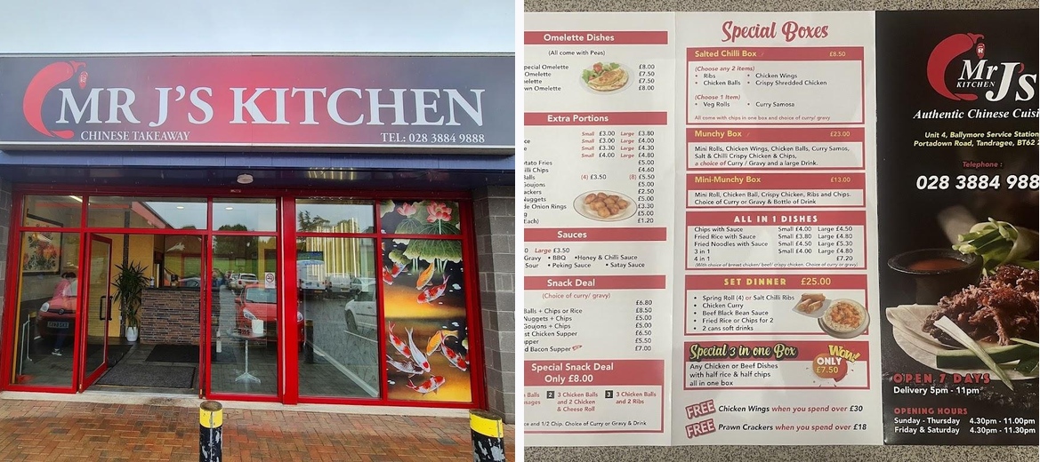 Welcome to Mr J's Kitchen, your go-to destination for delicious Chinese takeaway in Craigavon. Located conveniently at the Ballymore Filling Station, we offer a variety of mouthwatering dishes including our popular salted chilli chips, tender ribs, and savory chow mein. Whether you're in the mood for a quick bite or a cozy dine-in experience, our casual atmosphere and friendly service ensure you'll have a delightful meal. Enjoy no-contact delivery or take advantage of our free street parking. With prices ranging from £10–20, savor the authentic flavors of Asia without breaking the bank. Join us any day of the week for a tasty treat!The salted chilli chips steal the spotlight, highly praised for their crunch and flavor. Regulars consistently rave about the ribs drenched in savory gravy, making them a must-try. Chicken balls are another favorite; they pair perfectly with sweet and sour sauce, establishing their reputation for offering quality dishes. Fans appreciate the restaurant's extensive menu, which includes unique items like ramen among the more typical Chinese fare. Regulars commend the generous portion sizes, ensuring no one leaves hungry. Friendly service completes the experience, showing the staff's dedication to customer satisfaction.